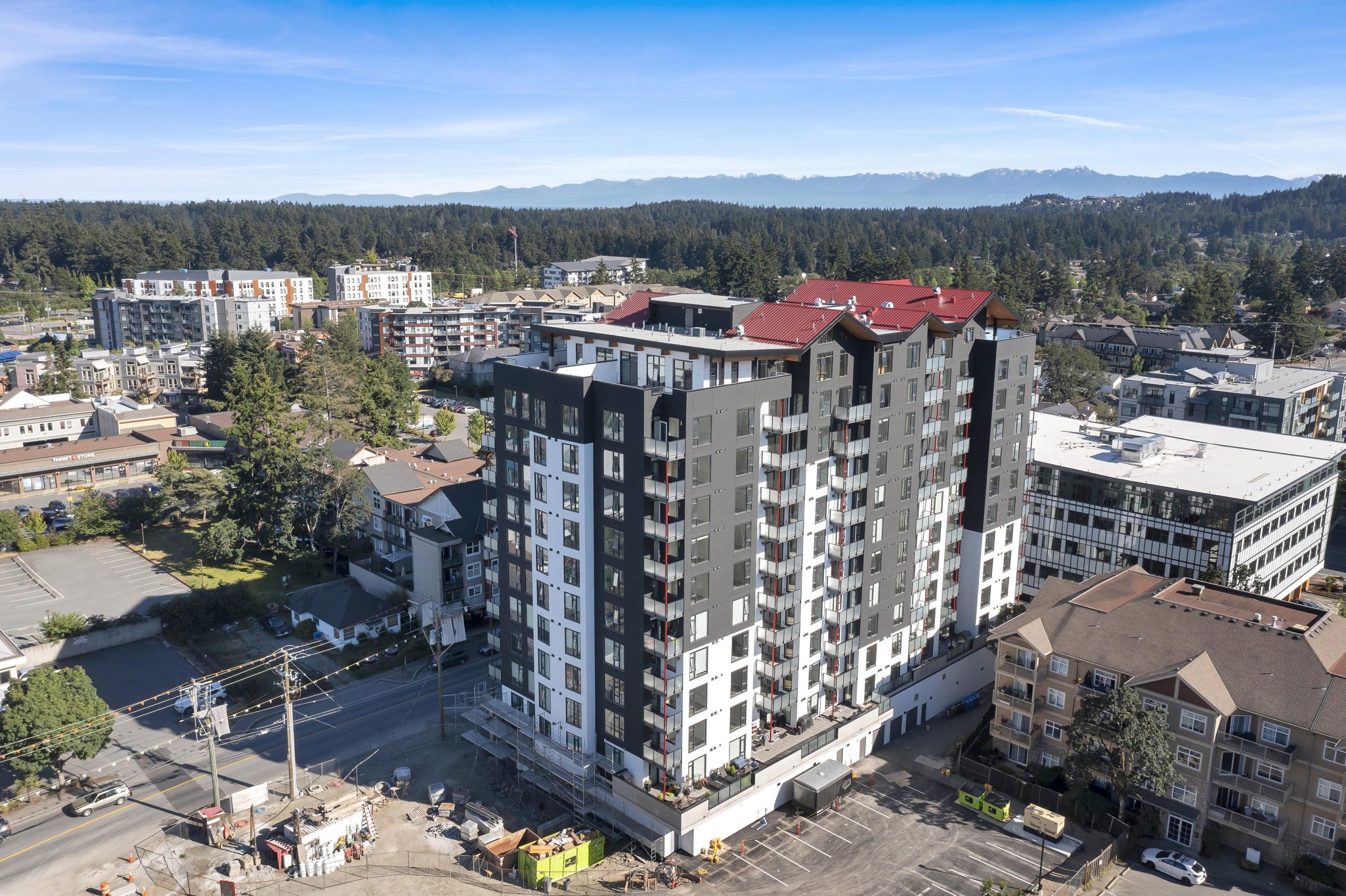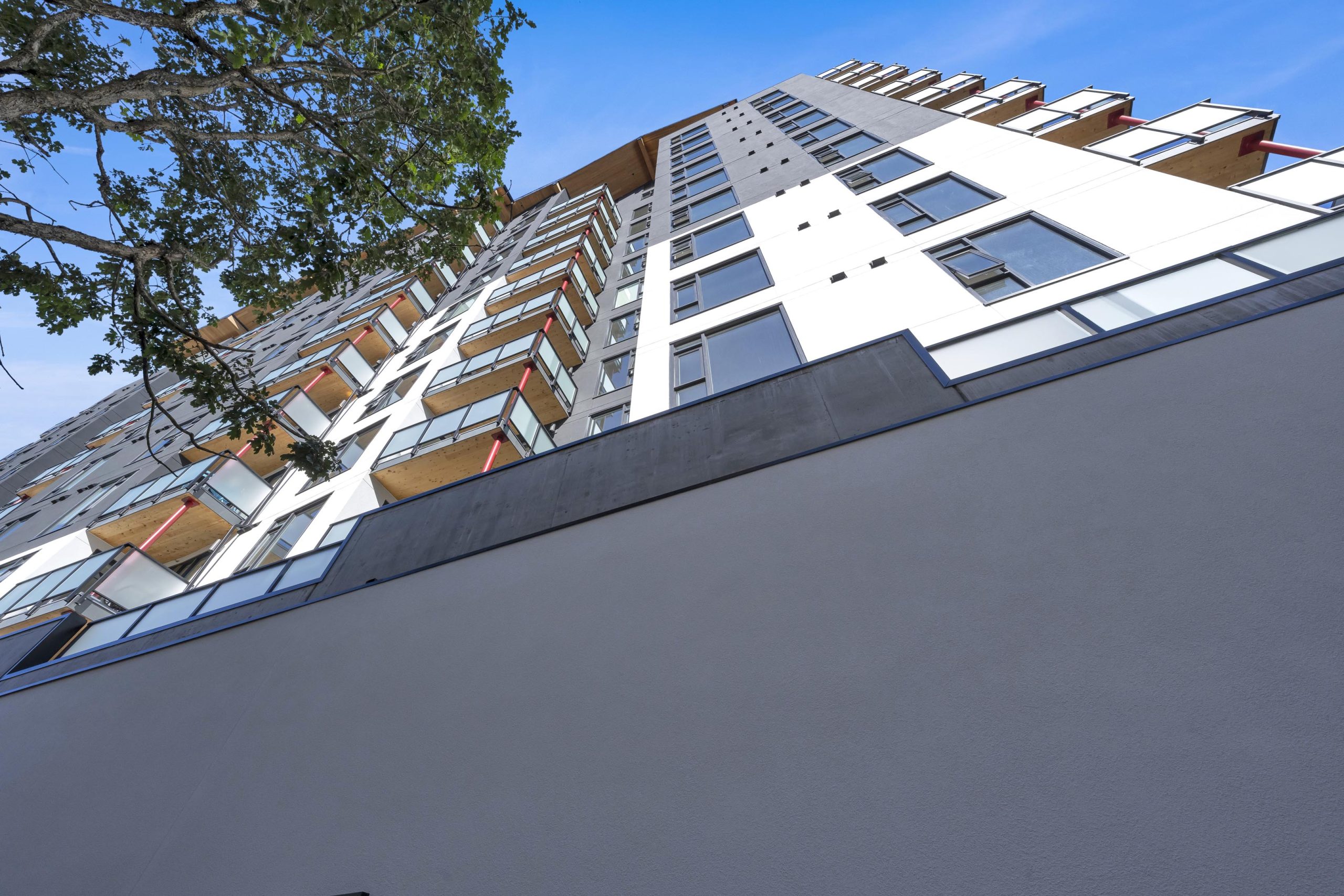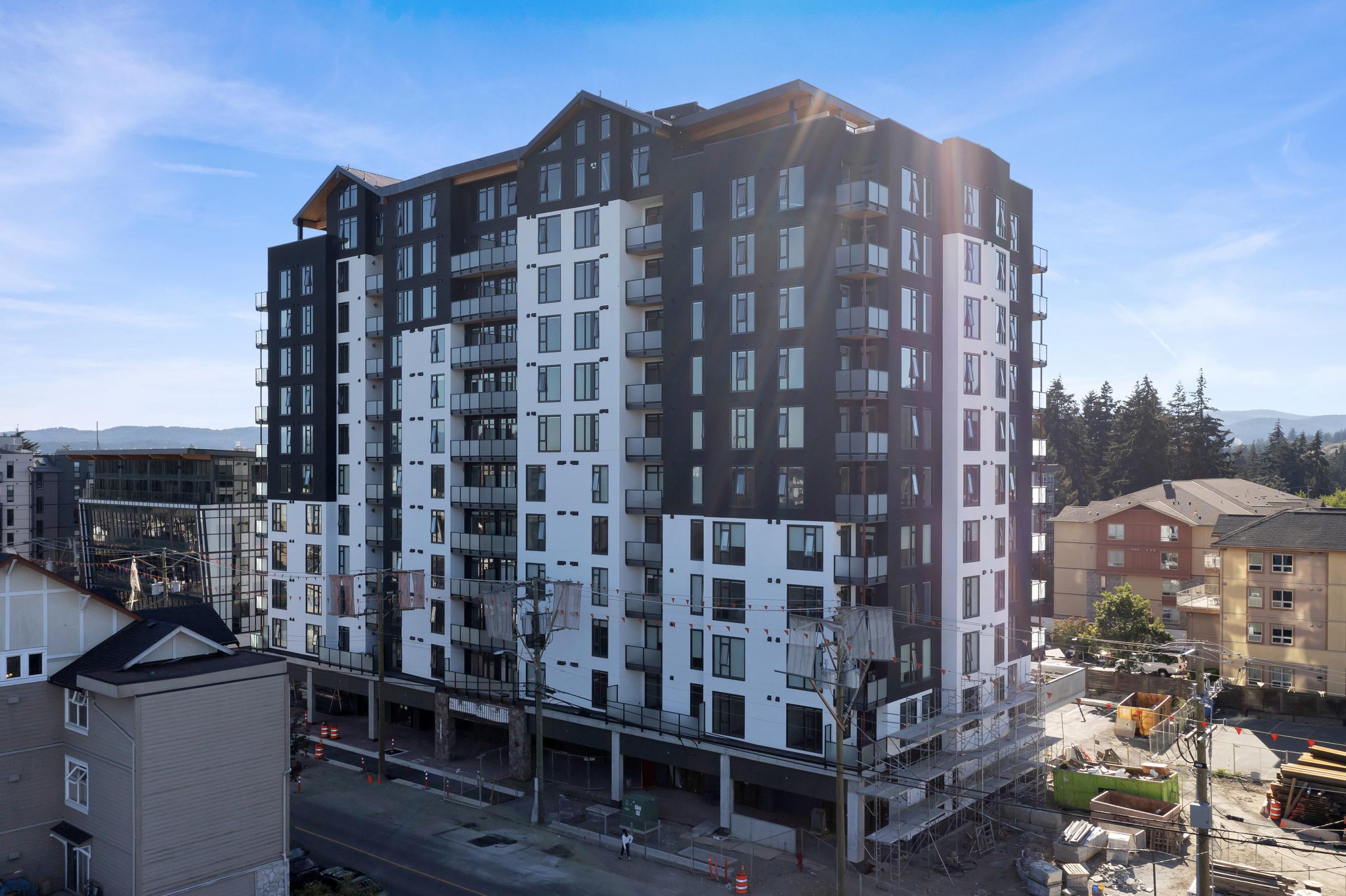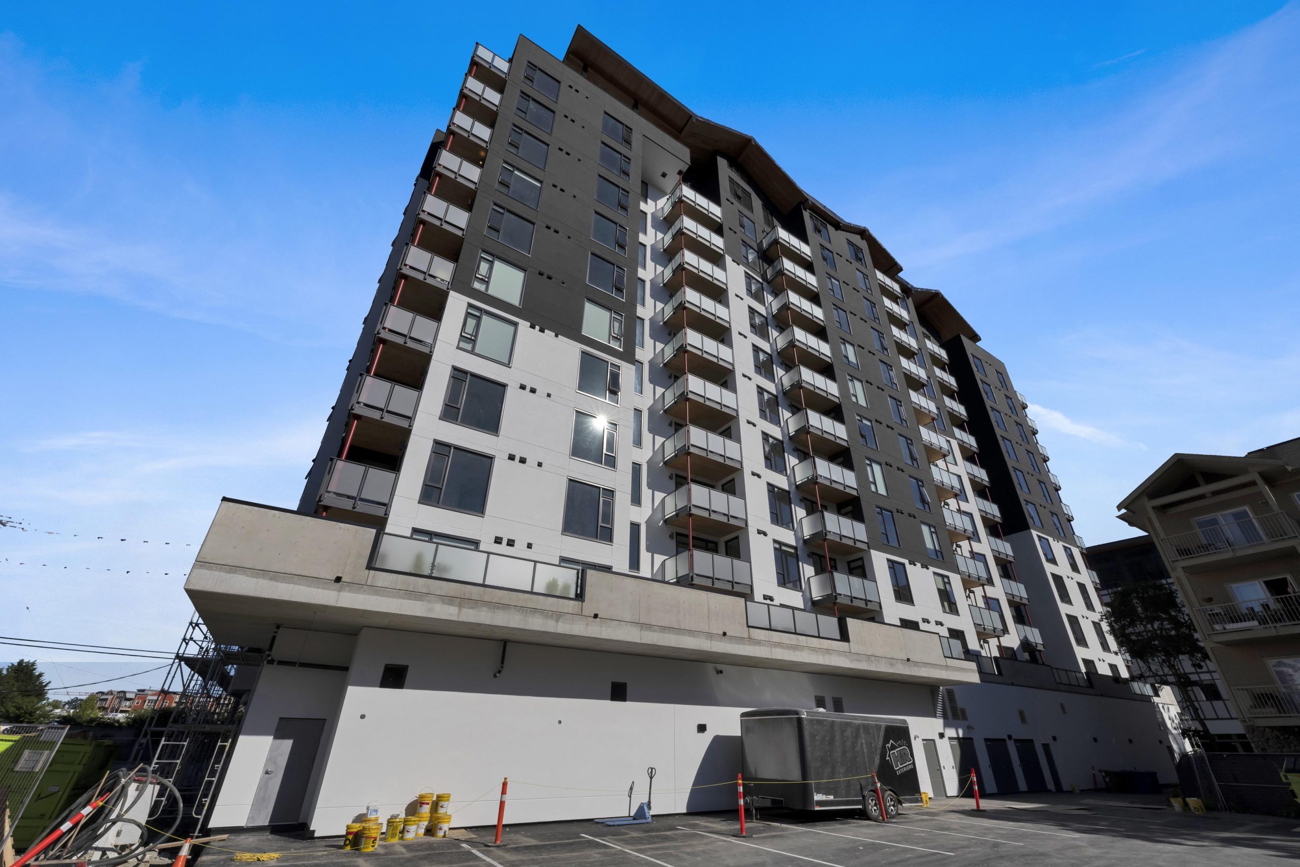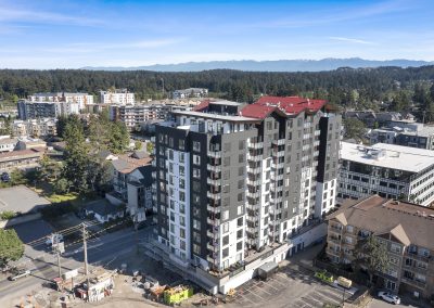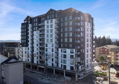 H&R Exteriors is proud to have completed work on the Tallwood 1 Apartments, a state-of-the-art mixed-use residential and commercial building located in Langford. The 12 storey structure was designed as a “mass timber” building, making it an environmentally conscious choice that reduces carbon emissions. The exterior façade was constructed using STO Exterior Insulation Finish System (EIFS) with an acrylic stucco finish for additional durability and improved aesthetics. As part of our commitment to quality, as always, H&R Exteriors took extra measures during construction to ensure that all materials used complied with industry standards and codes.